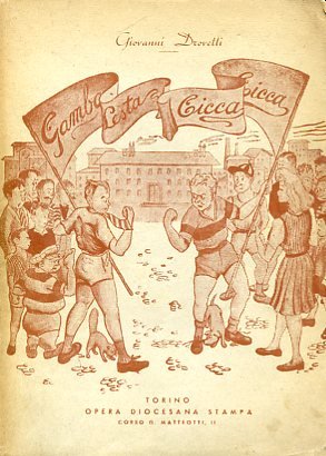 In-8°, pp. 209, (3), brossura editoriale illustrata in monocromia con le due fazioni contrapposte protagoniste del romanzo. Svariate tavv. in b.n. f.t. Ottimo stato. Bella dedica autografa dell'autore: 'A Giandôia, che impersonato in modo ammirabile dal carissimo Luigi Lupi, ha fatto con generoso disinteresse propaganda al mio modesto libro Giovanni Drovetti Torino 15 - 3 - 1948'. Prima edizione. Romanzo sportivo per la gioventù ambientato nella cittadina canavesana di Cuorgné. Il Drovetti (Sesto San Giovanni, 1879-Torino, 1958), bisnipote di Bernardino Drovetti, fu eclettico scrittore, autore teatrale, soggettista cinematografico (scrisse fra l'altro il soggetto per un film muto italiano su Frankenstein) e poeta.