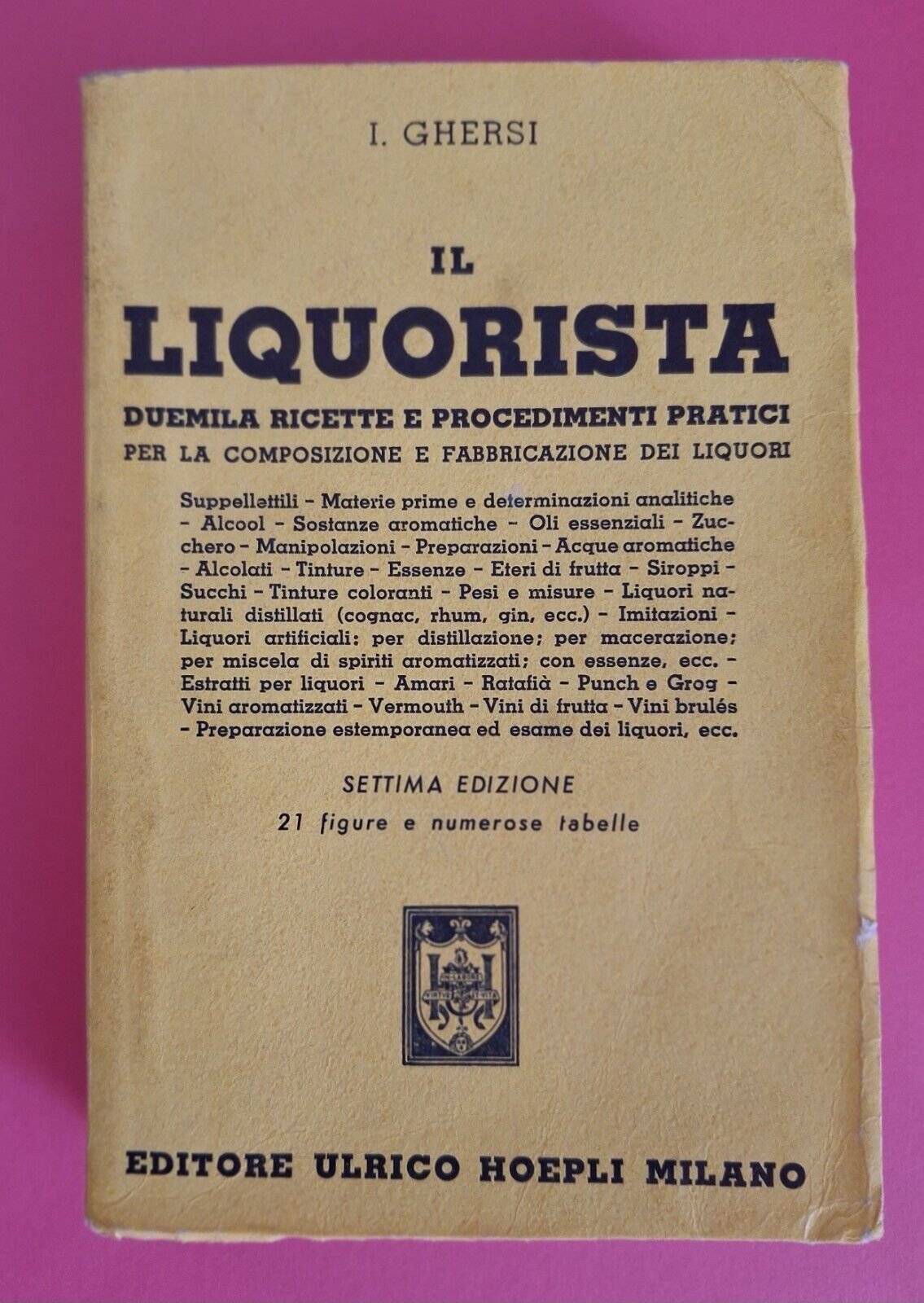 I. GHERSI IL LIQUORISTA SETTIMA EDIZIONE ULRICO HOEPLI 1950