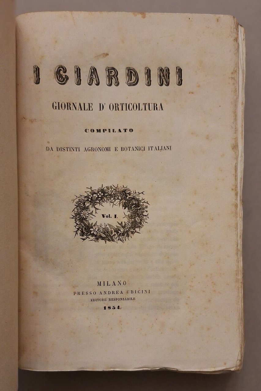I GIARDINI GIORNALE D'ORTICOLTURA MILANO A. UBICINI DALL'ANNO 1 AL 17 1854-18