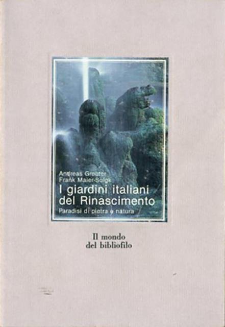 183 p. : ill. ; 18 x 12 cm. Il mondo del bibliofilo. 28. Titolo originale dell'opera: «Renaissance Garten in Italien : Paradiese aus Stein und Natur». Traduzione dal tedesco di Silvana Spataro. Brossura editoriale, coperta illustrata a colori in cartoncino flessibile colorato (grigio). All'interno numerose illustrazioni a colori su carta patinata lucida. Codice libreria 7810.
