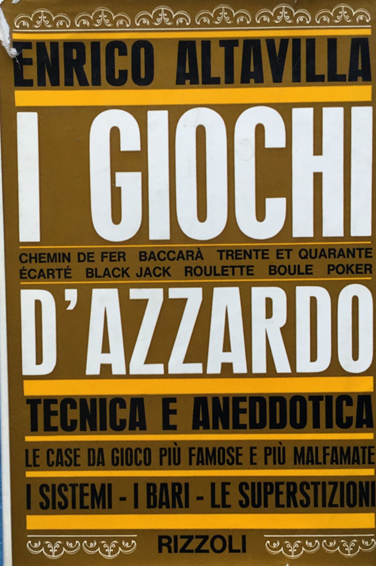 Enrico Altavilla, I giochi d'azzardo. 2. edizione, novembre 1963. Milano, rizzoli, 1963. Cartonato con sovracoperta- 209 pp., illustrazioni a colori, 19 cm. Condizioni ottimea 16 Ottimo (Fine) Ottimo
