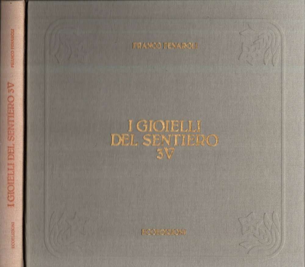 I gioielli del sentiero 3V. Fenaroli Franco. Ecoedizioni 1988. cm 23 x 23,5. Legatura editoriale telata grigio con titolo impresso oro. Riccamente illustrato a colori. Con allegata carina geografica del pecorso. Con astuccio editoriale in perfette condizioni. Ottimo stato.