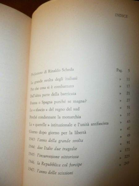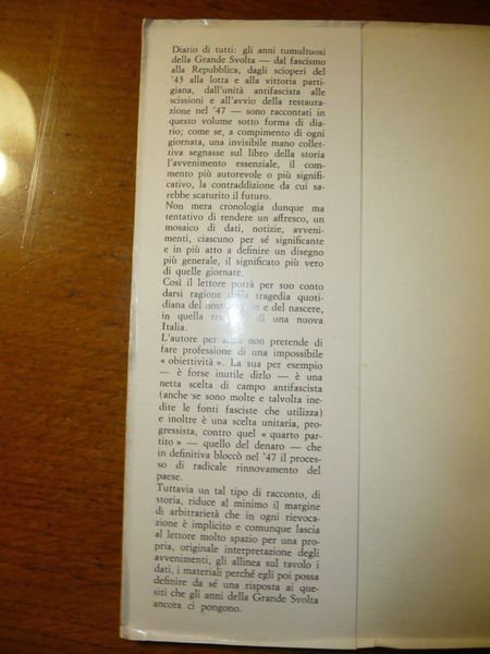 DESCRIZIONE: Editrice Sindacale Italiana Roma 1976 br. ed. ill. con risvolti pp. 255 in 8°. La storia d'Italia dal '43 al '47 sotto forma di diario. Tutto il percorso della Grande Svolta. Indice in foto. CONDIZIONI: Buone, vol. con normale segni ed usura del tempo. PESO / WEIGHT: 299 gr. without package