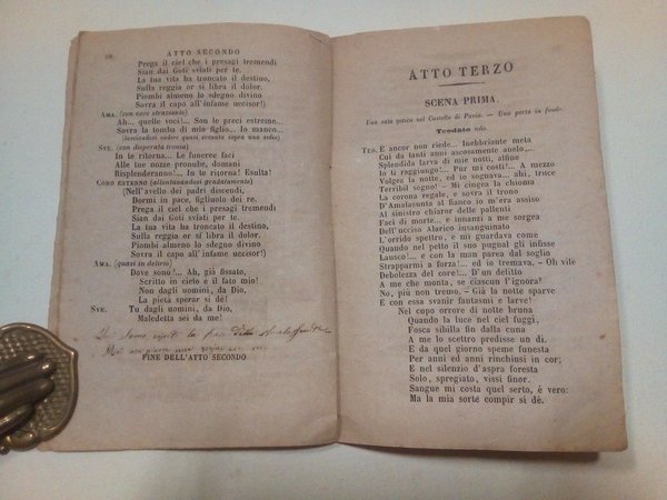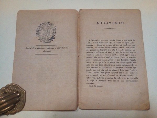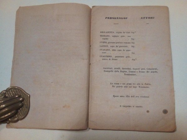 Lo spazio per i nomi degli interpreti è lasciato libero.<BR>Cm. 17,5 x 11; pp. 32; brossura editoriale; cucito.<BR>CONDIZIONI ACCETTABILI: le pagine sono integre e complete ma manca il piatto posteriore della copertina; piatto anteriore con piccole perdite; piccolo timbro di proprietà alla copertina e al frontispizio.