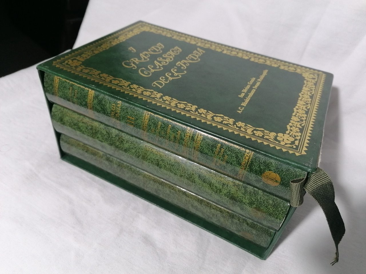 I GRANDI CLASSICI DELL'INDIA Sua Divina Grazia A.C. Bhaktivedanta Swami Prabhupada Cofanetto di 3 volumi rilegati in ottime condizioni