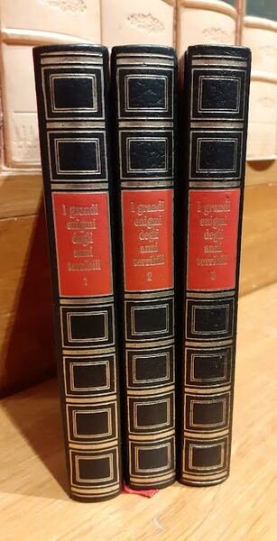 Collana completa divisa in tre volumi. Conservati in buono stato. Copertine rigide color rosso, decorate dal titolo, scritto in caratteri dorati, e da un'immagine diversa da volume a volume (vedasi fotografie). Costa nera, con decorazioni geometriche dorate e titolo su sfondo rosso, sempre in caratteri dorati. Pagine in discreto stato di conservazione, ma pur sempre leggibili e sfogliabili. Presenti molte illustrazioni e un segnalibro, in filo rosso, integrato in ciascun volume.