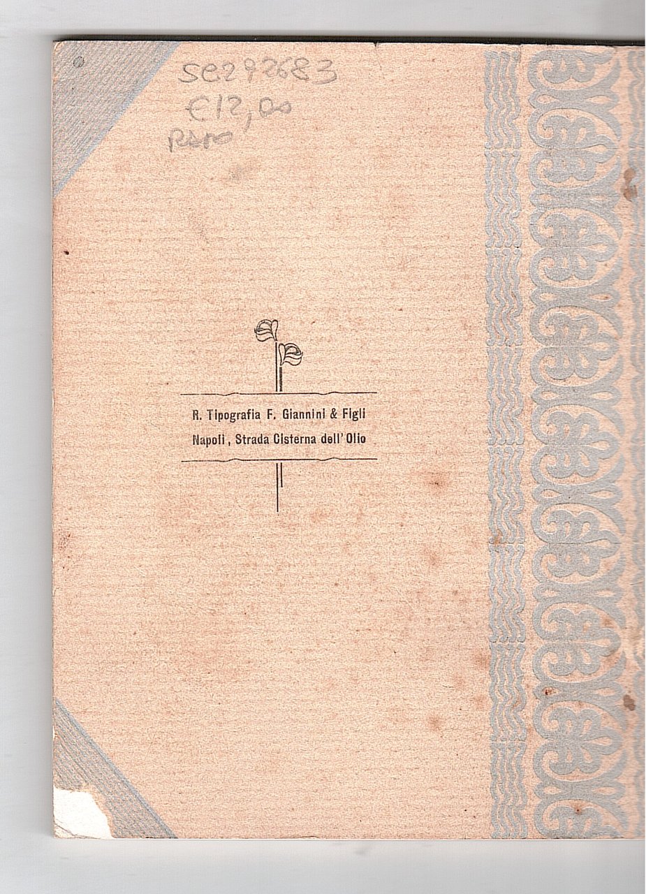 All'interno, sul frontespizio: Musica della scuola napoletana. (Secoli XVII-XVIII). Primo saggio di studii a beneficio dei danneggiati del terremoto della Marsica.