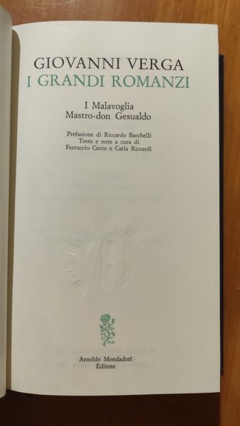 - Giovanni Verga, Arnoldo Mondadori Editore, I grandi romanzi