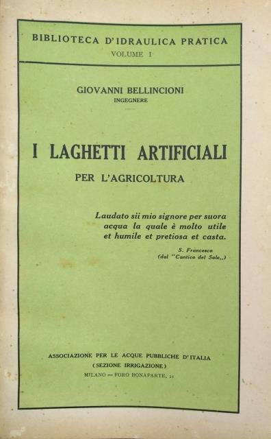 Associazione per le acque publiche d'Italia (Sezione Irrigazione), s. d. (1930 ca.). Volume I. In 8vo piccolo, pp. 148 + 2 (Indice), fot. in b/n f.t., bross. orig. Normale ingiallimento ma assol. buono stato.