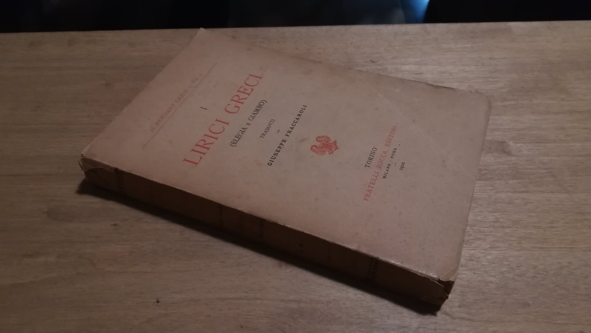 A cura di Giuseppe Fraccaroli - I lirici greci (Elegia e Giambo) Fratelli Bocca editore - Prima edizione 1910 Libro in buone condizioni, piccole mancanze al dorso rigato angolo alto e basso, piccolo strappetto quarta di copertina lato basso, brunito. Non esitate a contattarci per altre foto o richieste. Saremo lieti di soddisfare ogni vostra esigenza.