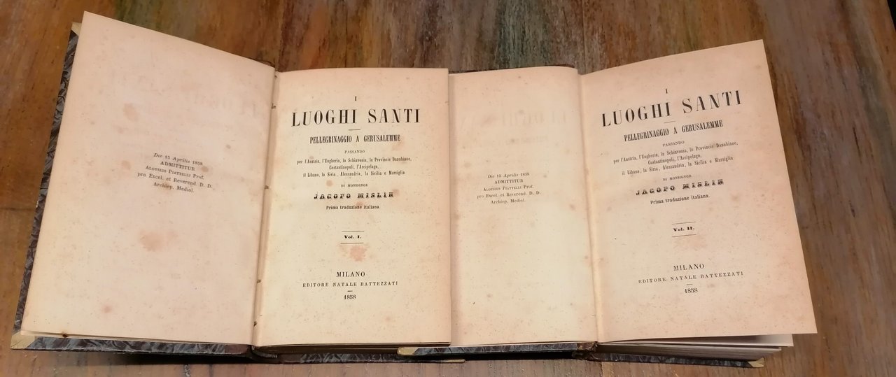 I Luoghi Santi. Pellegrinaggio a Gerusalemme passando per l'Austria, l'Ungheria, la Schiavonia, le Provincie Danubiane, Costantinopoli, l'Arcipelago, il Libano, la Siria, Alessandria, la Sicilia e Marsiglia, di Monsignor Jacopo Mislin. Prima traduzione italiana.