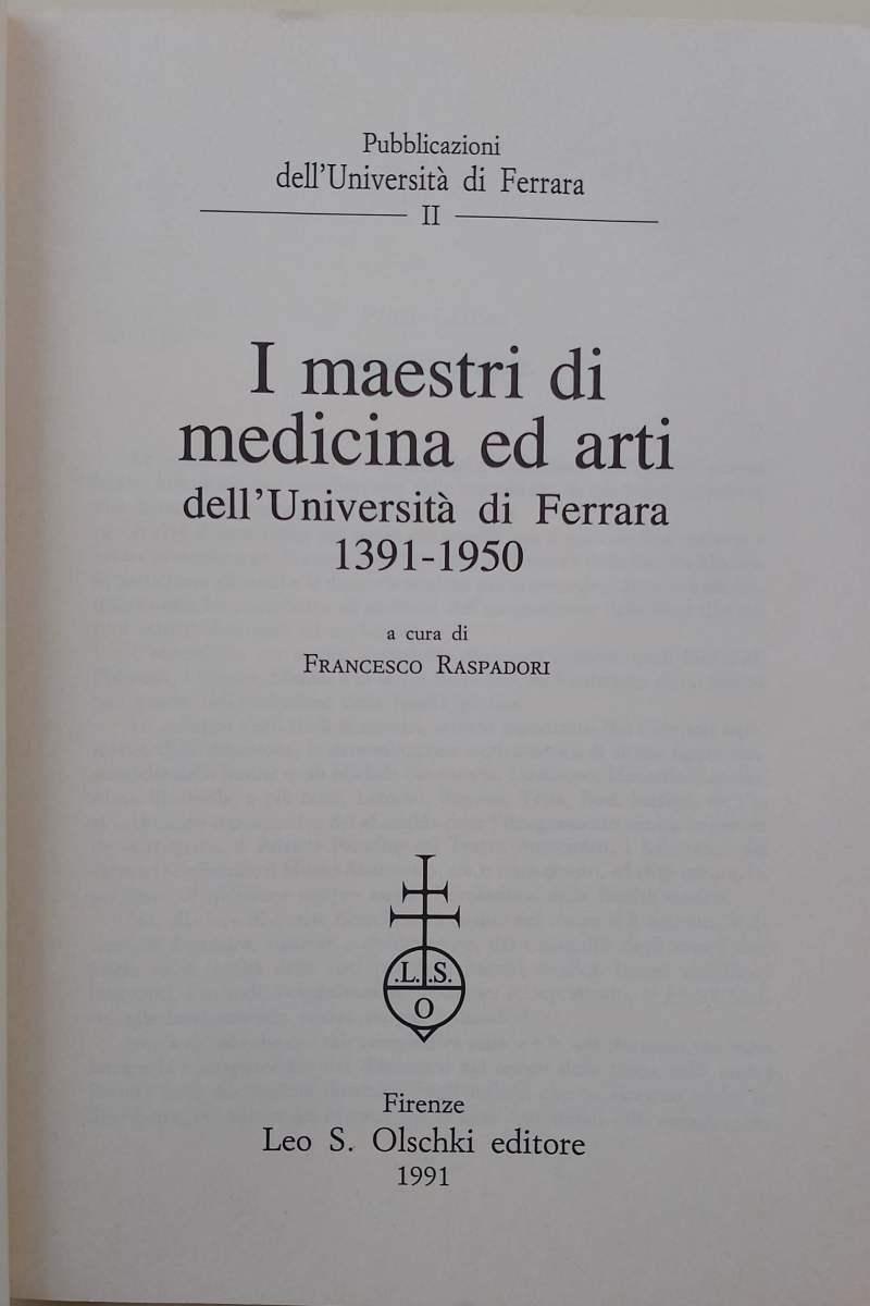 I MAESTRI DI MEDICINA ED ARTI DELL'UNIVERSITA' DI FERRARA(1391-1950)(1991)
