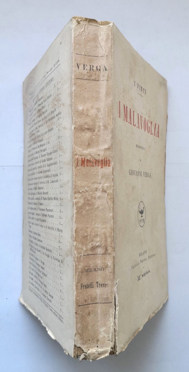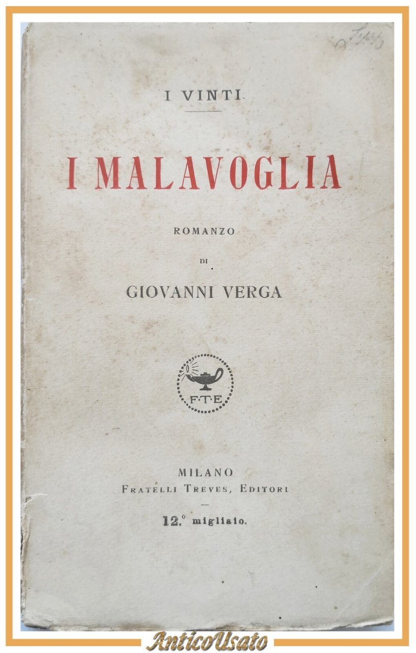 I MALAVOGLIA romanzo di Giovanni Verga 1920 Treves 12 migliaio libro i vinti