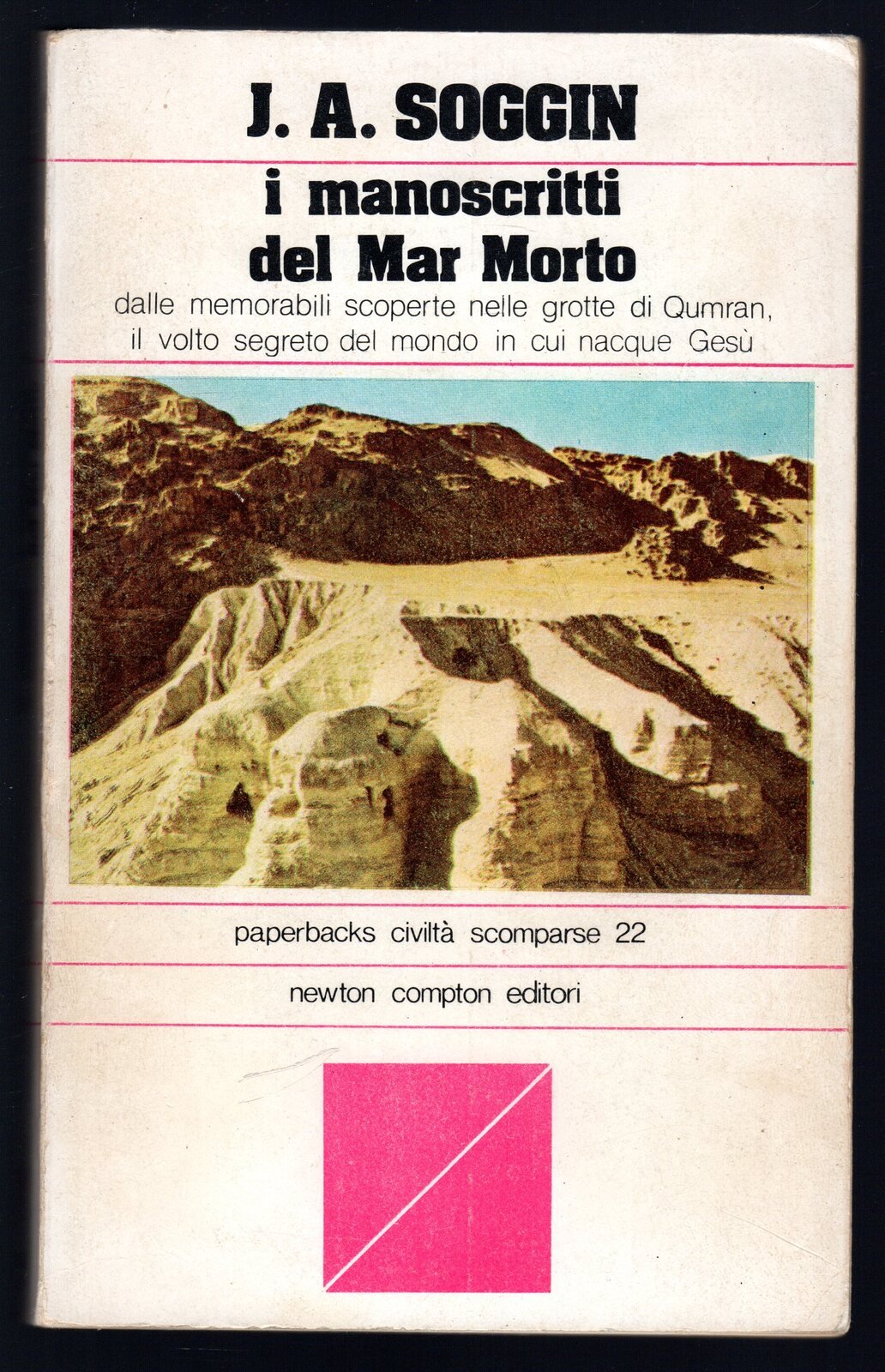 Libro vintage. Argomento: Saggi. Autore: Soggin J. A. Editore: Newton Compton. Luogo: Roma. Anno: 1978. Formato: in-16°. Pagg: 205. Legatura: Brossura. Collana: Paperbacks civiltà scomparse 22. Conservazione: ottima. Dalla quarta di copertina: "Trent'anni fa aveva inizio la sensazionale scoperta dei rotoli ebraici del Mar Morto: oggi, con la pubblicazione dell'ultimo testo di maggior importanza, la storia sembra giunta al suo epilogo, sicchè è il momento di una sintesi conclusiva, Firma d'appartenenza in prima pagina. Prima edizione. Illustrazioni in bn fuori dal testo.