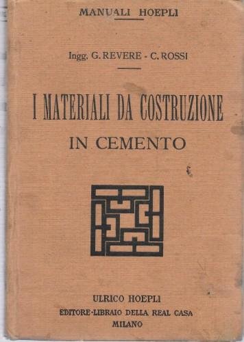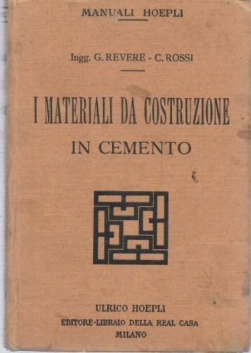 in 16°, pp. VIII, 237, leg. edit.; "I materiali. La preparazione del calcestruzzo. Mattoni. Blocchi pieni e forati. Tegole. Piastrelle e pietrini. Tubi. Gradini. Materiali diversi. Impianti di cantieri" con 189 disegni e 7 tavv. di cui alcune ripiegate; qc. lieve ingiallimento. 471/28 BIS