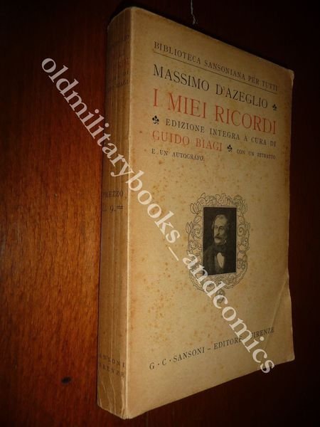 I MIEI RICORDI MASSIMO D'AZEGLIO SANSONI 1924 BELLISSIMO LIBRO DI MEMORIE