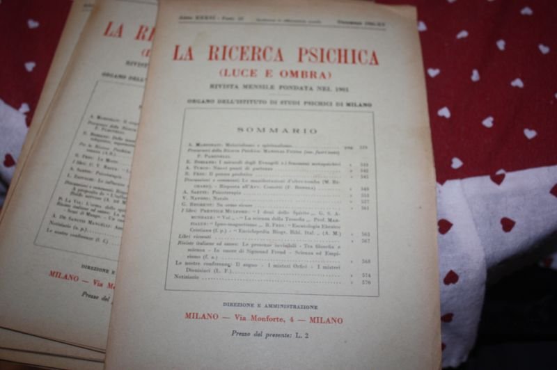 <p>4015 LA RICERCA PSICHICA LUCE E OMBRA DICEMBRE 1936 FASC.12 MATERIALISMO E SPIRITUALISMO A .MARZORATI MARSILIO FICINO I MIRACOLI DEGLI EVANGELI E I FENOMENI METAPSICHICI IL POTERE PROFETICO DI R.FEDI LE MANIFESTAZIONI D'OLTRE TOMBA M.RICHARD RISPOSTA ALL'AVV CAMOTTI DI F.BONOLA NATALE LE PRESENZE INVISIBILI IL SOGNO I MISTERI ORFICI I MISTERI DIONISIACI DA PAG 530 A PAG 575</p>,