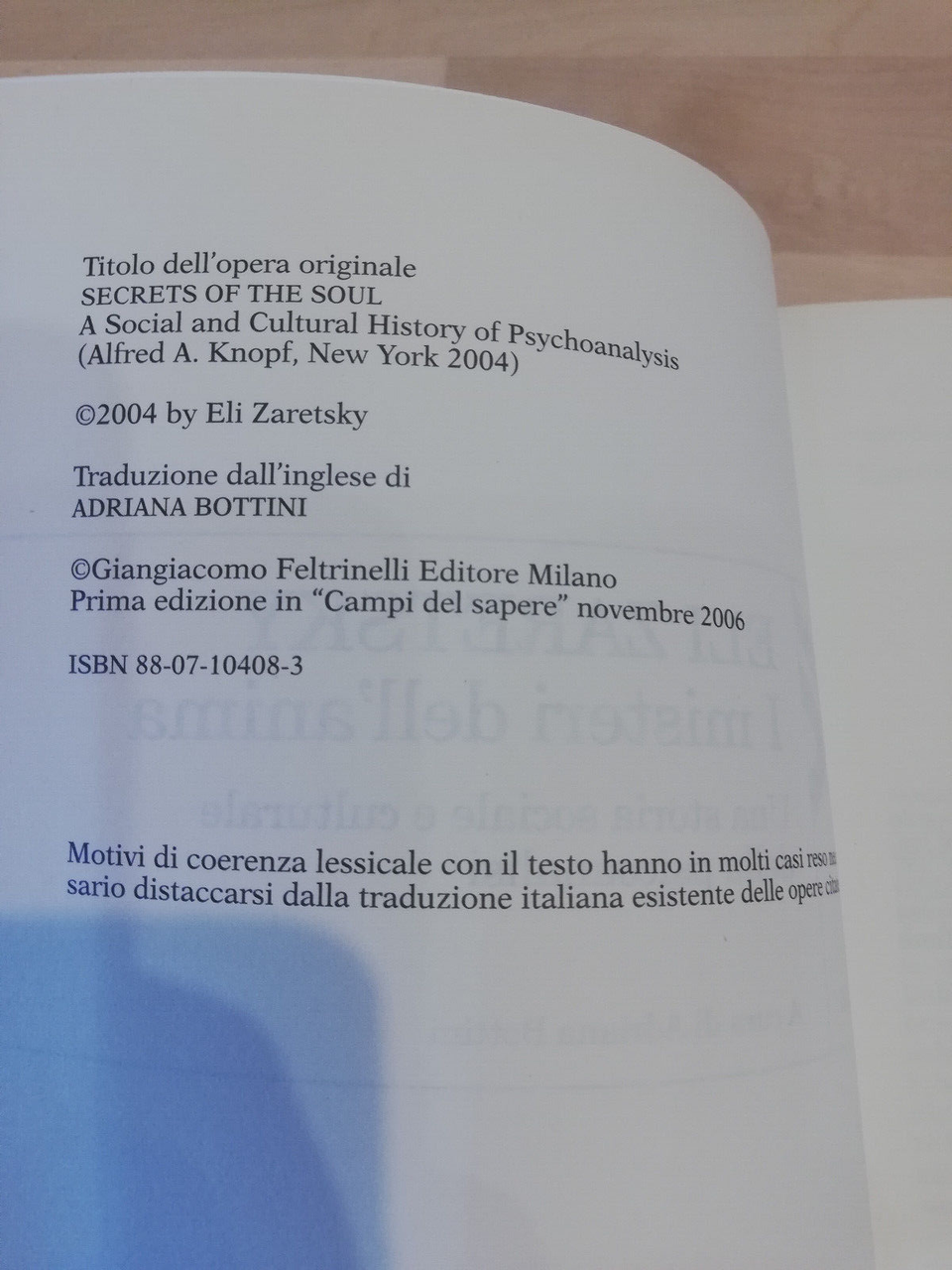 I misteri dell'anima, Eli Zaretsky, Feltrinelli, 2004