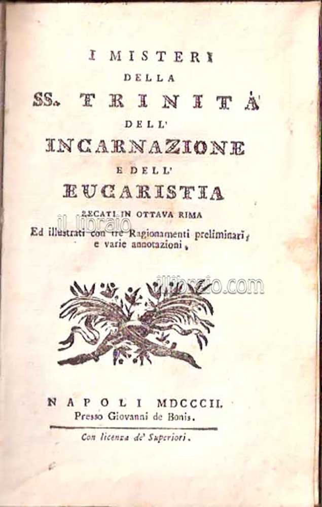 I misteri della SS. Trinità, dell'Incarnazione e dell'Eucarestia recati in ottava rima ed illustrati con tre ragionamenti preliminari, e varie annotazioni
