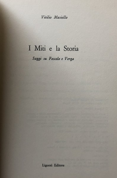 I MITI E LA STORIA. SAGGI SU FOSCOLO E VERGA