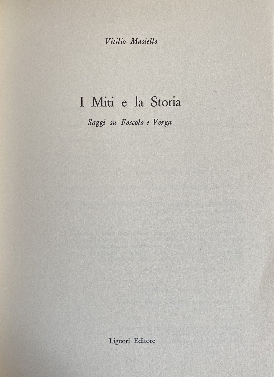 Titolo: I miti e la storia. Saggi su Foscolo e Verga