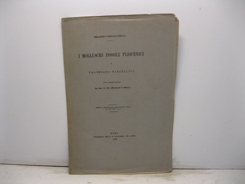 I molluschi fossili pliocenici di Palombara-Marcellina con osservazioni del dott. G. De Angelis D'Ossat. Estratto dal Bollettino della Societa' Geologica Italiana, vol. XVII (1898), fasc. 1