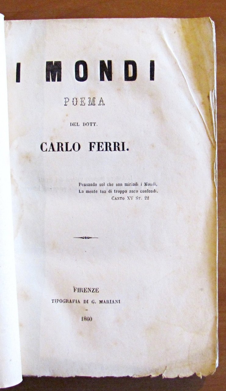 Raro libro di Protofantascienza!!! Tip. G. Mariani - Firenze, 1860. Brossura editoriale con piccole mende al dorso. 11,5x18; pp.320. INTONSO - BUONISSIMO , Molto buono (Very Good)