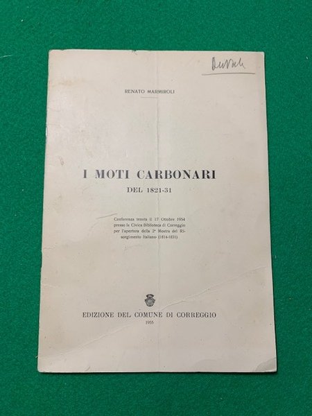 I Moti Carbonari del 1821-31, conferenza tenuta il 17 ottobre 1954 presso la Civica Biblioteca di Correggio per l'apertura della 2° Mostra del Risorgimento Italiano (1814 - 1831).