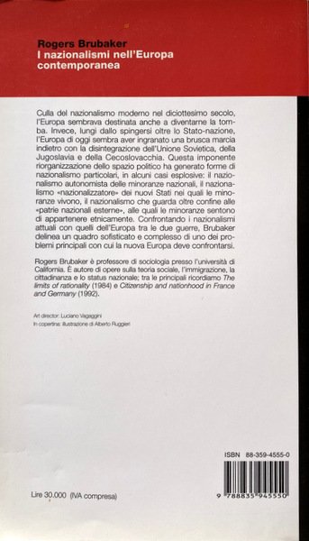 Culla del nazionalismo moderno nel diciottesimo secolo, l'Europa sembrava destinata anche a diventarne la tomba. Invece lungi dallo spingersi oltre lo Stato-nazione, l'Europa di oggi sembra aver ingranato una brusca marcia indietro con la disintegrazione dell'Unione Sovietica, della Jugoslavia e della Cecoslovacchia. Questa imponente riorganizzazione dello spazio politico ha generato forme di nazionalismo particolari, in alcuni casi esplosive: il nazionalismo autonomista delle minoranze nazionali, il nazionalismo "nazionalizzatore" dei nuovi Stati nei quali le minoranze vivono, il nazionalismo che guarda oltre confine alle "patrie nazionali esterne", alle quali le minoranze si sentono di appartenere etnicamente. Confrontando i nazionalismi attuali con quelli dell'Europa tra le due guerre, Brubaker delinea un quadro sofisticato e complesso di uno dei problemi principali con cui la nuova Europa deve confrontarsi.