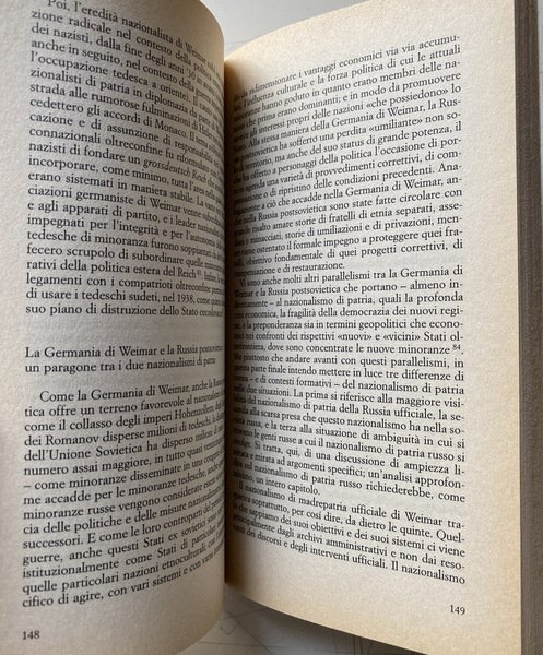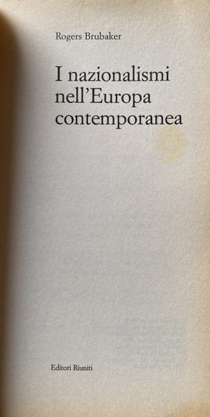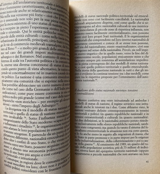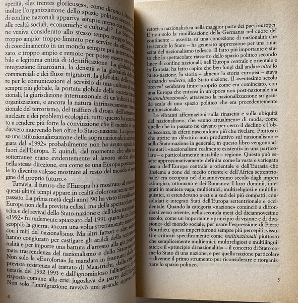Soggetti: Società, Scienze sociali, Politica, Governo, Nazionalismo, Europa, Ideologie, Teorie politiche, Marxismo, Comunismo, Cittadinanza, Nazionalità, Francia, Germania, Stato-nazione, Fin-de-siècle, Disintegrazione, Unione Sovietica, Jugoslavia, Cecoslovacchia, Autonomismo, Minoranze nazionali, Etnie, Pierre Bourdieu, Sociologia, Weimar, Russia, Questione nazionale, Minoranze etniche, Autodeterminazione, Confini, Frontiere, Emigrazione, Condizioni economiche, Guerre, Identità, Appartenenza, Storia, Patria, Studi culturali, Imperialismo, COlonialismo, Croazia, Bosnia, Serbia, Polonia, Est, Revanscismo, Ebrei, Sionismo, Istituzioni, Indipendenza, Discriminazione razziale, Diritti politici, Lingua, Jacques Delors, Unione europea, Geopolitica, Flussi migratori, Divisione del mondo, Globalizzazione, Imperi, Volk, Popolo, Nazismo, Anschluss, Deutschtumspolitik, Slesia, Galizia, Renania, Pomerania, Poznania, Slovenia, Montenegro, Macedonia, Azerbaijan, Repubbliche Sovietiche, Nagorno-Karabakh, Armenia, Uzbekistan, Tajikistan, Bulgaria, Lituania, Romania, Slovacchia, Ucraina, Ungheria, Residenza, Gruppi etnici, Deportazioni, Russofoni, Crimea, URSS, Conquest, Horowitz, Madrelingua, Irredentismo, Conflitti, Kossovo, Donbass, Slavi, Kazakistan, Turchia, Etnocidio, Multiculturalismo, Etnicità, Bibliografia, Libri Vintage Fuori catalogo, Society, Social sciences, Politics, Government, Nationalism, Europe, Ideologies, Political theories, Marxism, Communism, Citizenship, Nationality, France, Germany, Nation-state, Disintegration, Soviet union, Yugoslavia, Czechoslovakia, Autonomism, National minorities, Ethnicities, Sociology, National question, Ethnic minorities, Self-determination, Borders, Emigration, Economic conditions, Wars, Identity, Belonging, History, Homeland, Cultural studies, Imperialism, Colonialism, Croatia, Poland, East, Revanchism, Jews, Zionism, Institutions, Independence, Racial discrimination, Political rights, Language, European union, Geopolitics, Migration flows, Division of the world, Globalization, Empires, People, Nazism, Silesia, Galicia, Rhineland, Soviet republics, Ethnocide, Nagorno-Karabakh, Lithuania, Slovakia, Ukraine, Hungary, Residence, Ethnic groups, Deportations, Russian speakers, Mother tongue, Irredentism, Conflicts, Kosovo, Donbass, Slavs, Kazakhstan, Turkey, Multiculturalism, Ethnicity, Bibliography, Books out of print