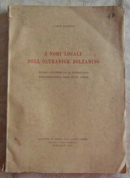 I NOMI LOCALI DELL'OLTRADIGE BOLZANINO. PRIMO CONTRIBUTO AL DIZIONARIO TOPONOMASTICO DELL'ALTO ADIGE.