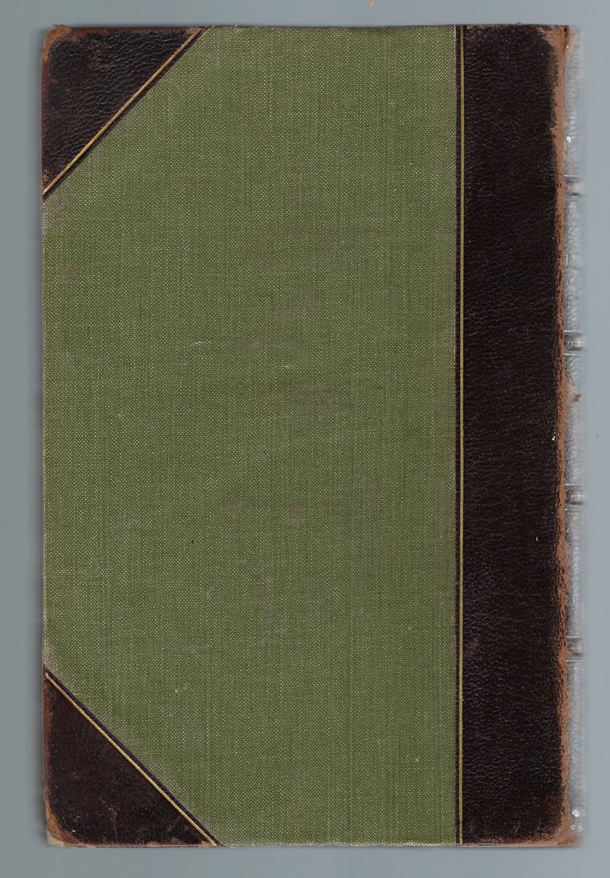 Rilegatura artigianale mezza pelle con evidenti segni d'usura e di tempo, con abrasioni e parti consunte.