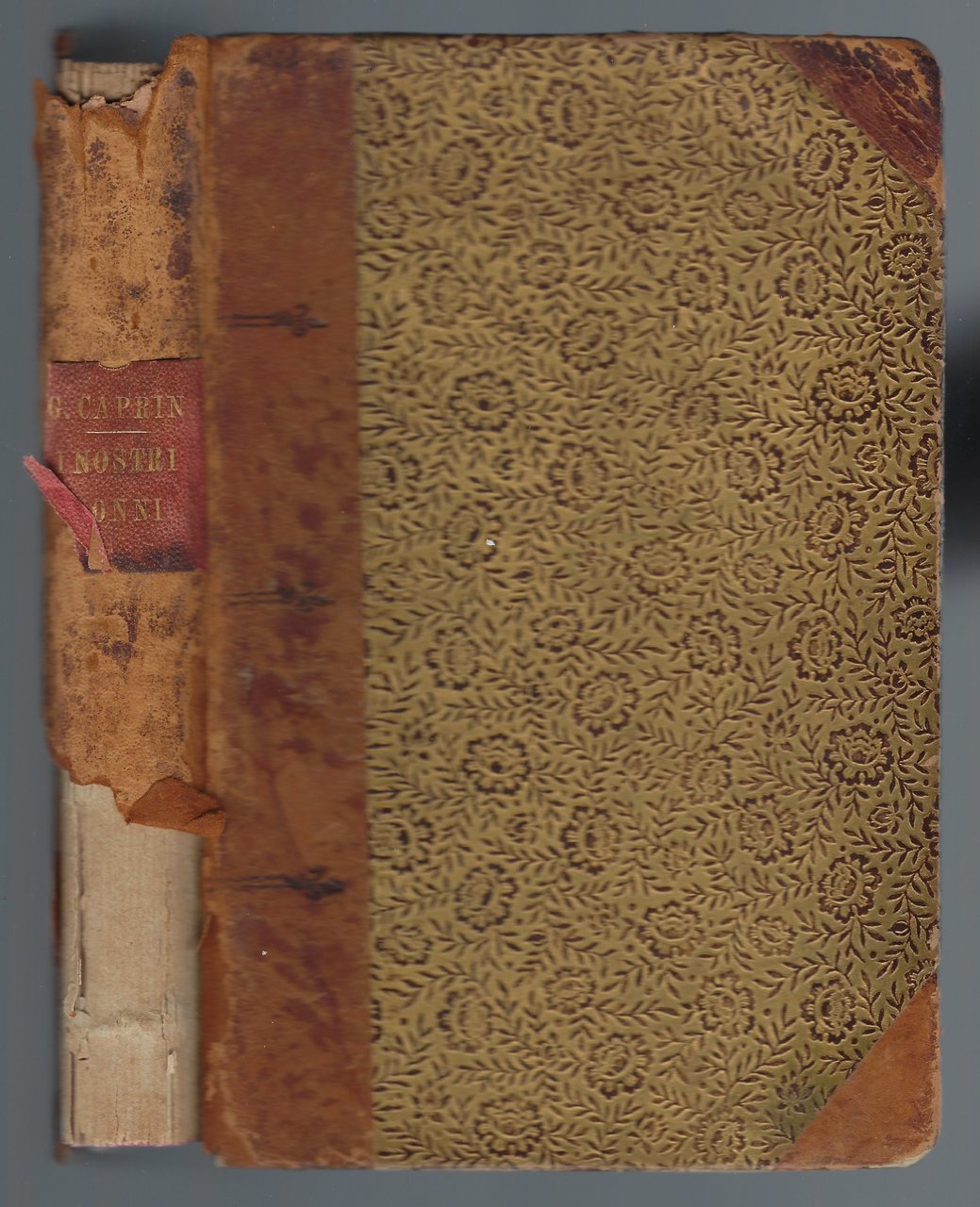 Brossura editoriale all'interno di rilegatura in mezza pelle e carta dorata goffrata.