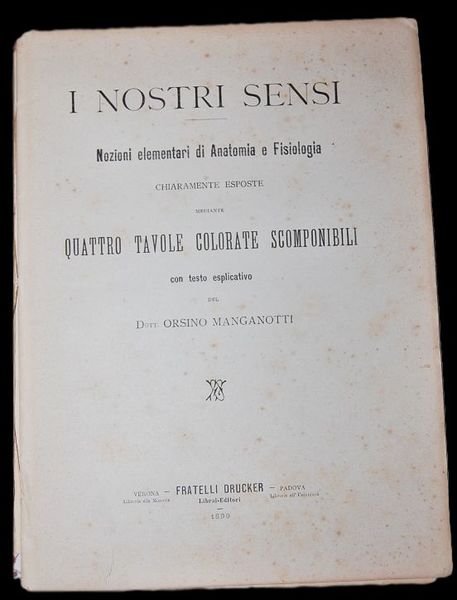 I nostri sensi. Nozioni elementari di Anatomia e Fisiologia chiaramente esposte mediante quattro tavole colorate scomponibili. con testo esplicativo del dott. Orsino Manganotti.