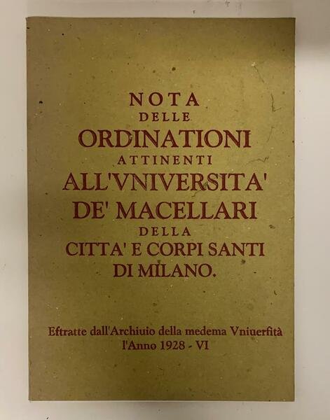I Nota delle ordinationi attinenti all'Università de' macellari
