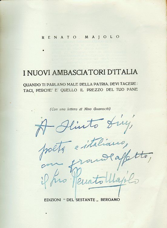 I nuovi ambasciatori d'Italia. Quando ti parlano male della Patria, devi tacere: taci, perché è quello il prezzo del tuo pane. (Con una lettera di Nino Guareschi).