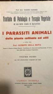 [vt] Con 345 fotoincisioni originali nel testo. Trattato di patologia e terapia vegetale ad uso delle scuole di agricoltura a cura del Prof. Dott. Teodoro Ferraris. Fioriture e piccole mancanze alla velina protettiva, ordinari segni d'uso e del tempo, buono nel complesso. Pagg. XVI, 346. Brossura edit. ill. con velina protettiva. Mis mm 235x165
