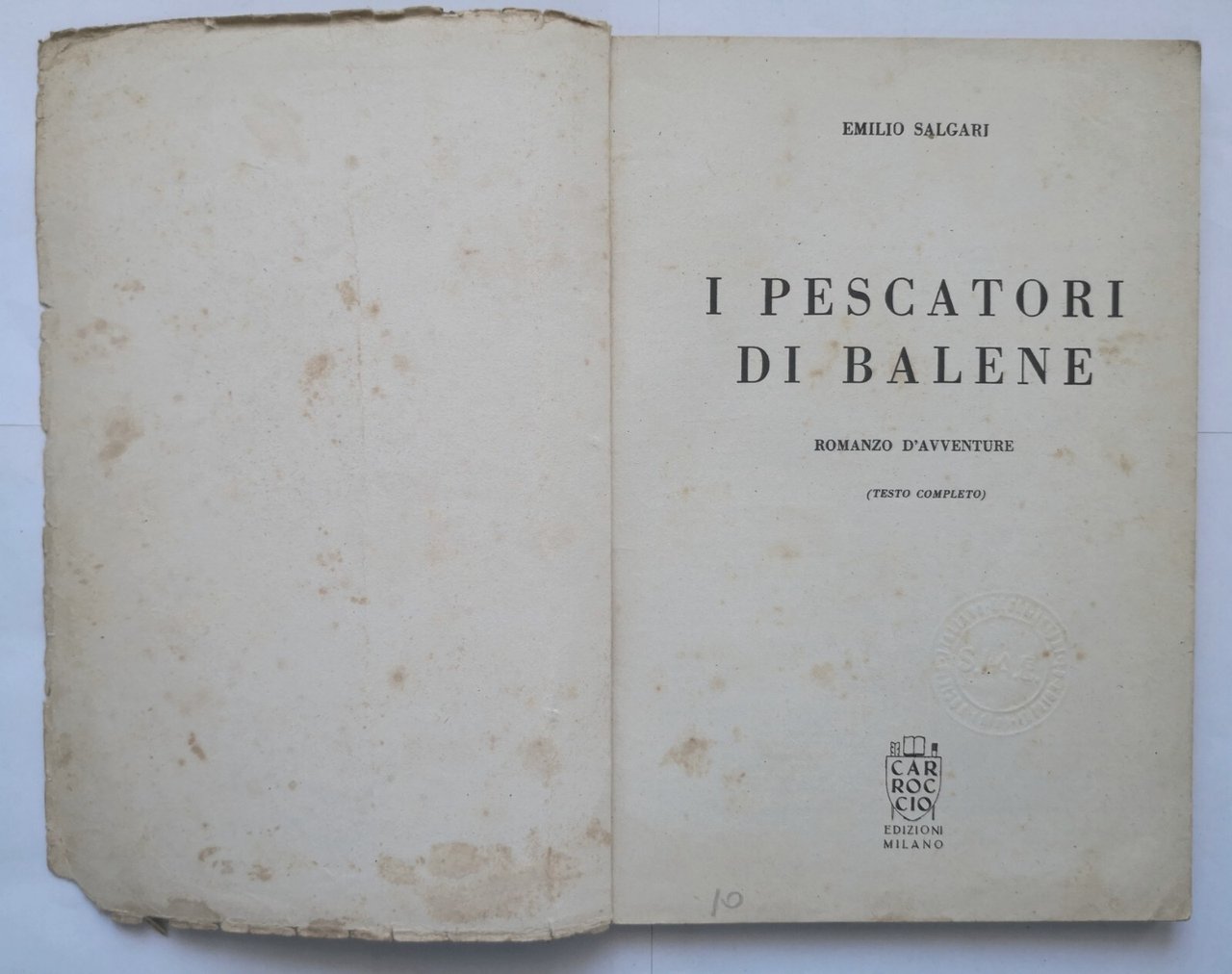 I PESCATORI DI BALENE di Emilio Salgari 1947 Carroccio Libro illustrato ragazzi