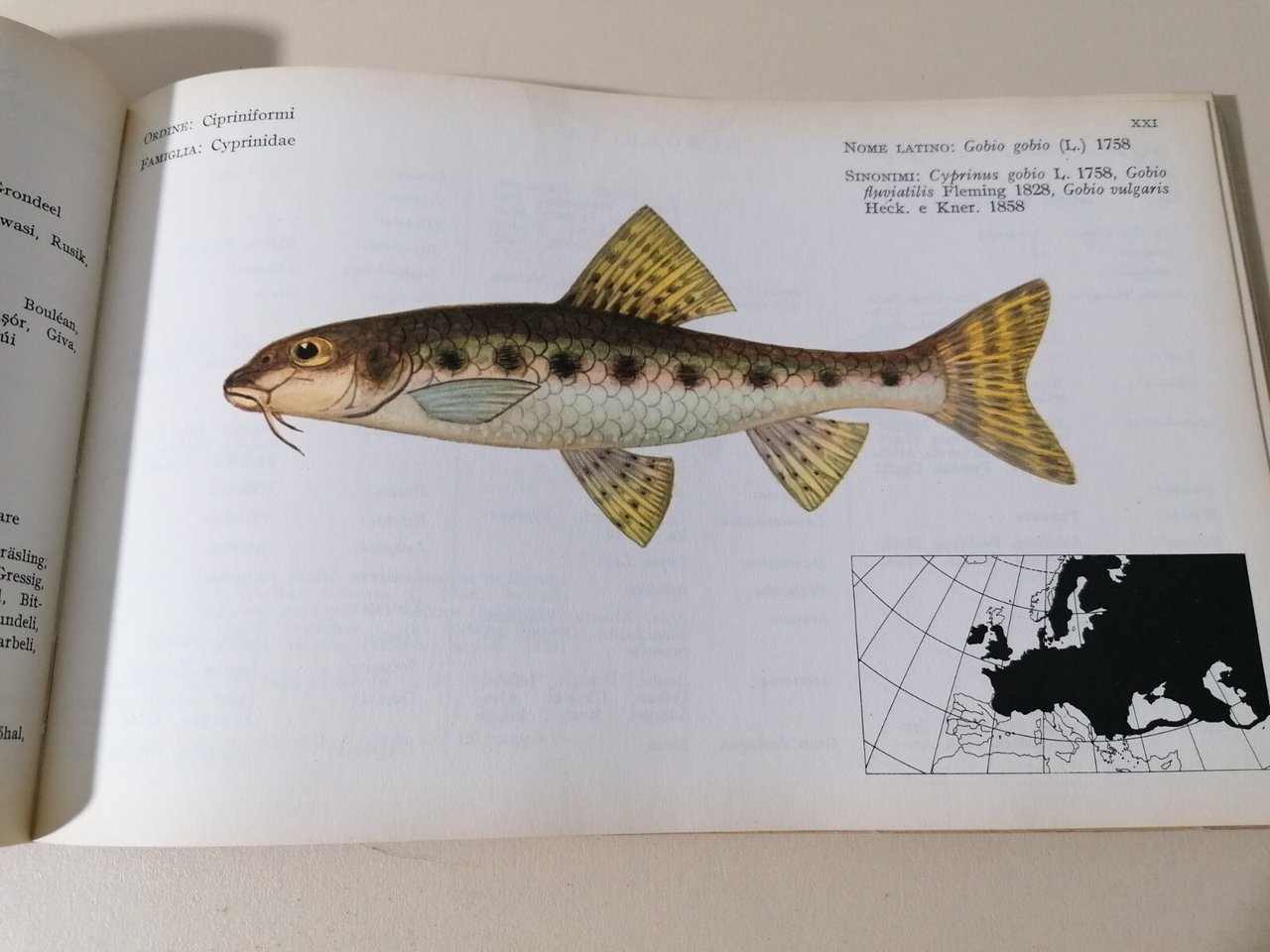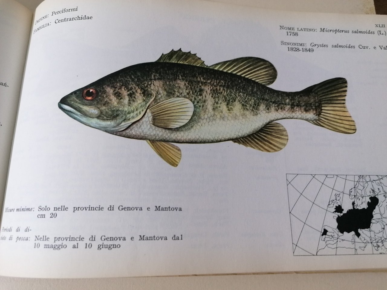 Formato 24X15. I pesci sono riprodotti a colori dal pittore Vittorio Caroli e loro nomi comuni usati nelle regioni italiane e nelle altre nazioni europee. Introduzione della Federazione Italiana della Pesca Sportiva Pagine 37 Condizioni: discrete, buone compatibilmente con l'età Collocazione: 1B-11-11