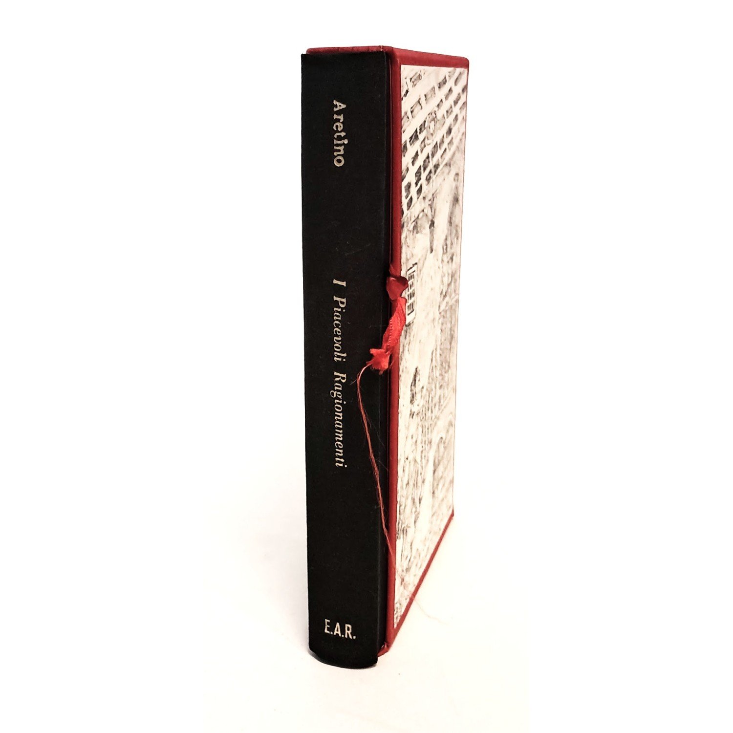 PRIMA EDIZIONE nella Collana classici proibiti IV. Prefazione di Francesca Alberini. Raccolta di dialoghi articolati su tre giornate: Piacevoli ragionamenti tra la nanna e la figlia Pippa su l'arte puttanesca e cortigianesca; Piacevoli ragionamenti tra nanna e Pippa sui tradimenti degli uomini - loro conclusioni; Piacevoli ragionamenti nell'orto di Nanna con la comare e la balia - l'arte della ruffianaria. Immagini fuori testo di Giovanni Omiccioli. Copertina cartonata con cofanetto di cartone. Pp. 308. Ottime condizioni.