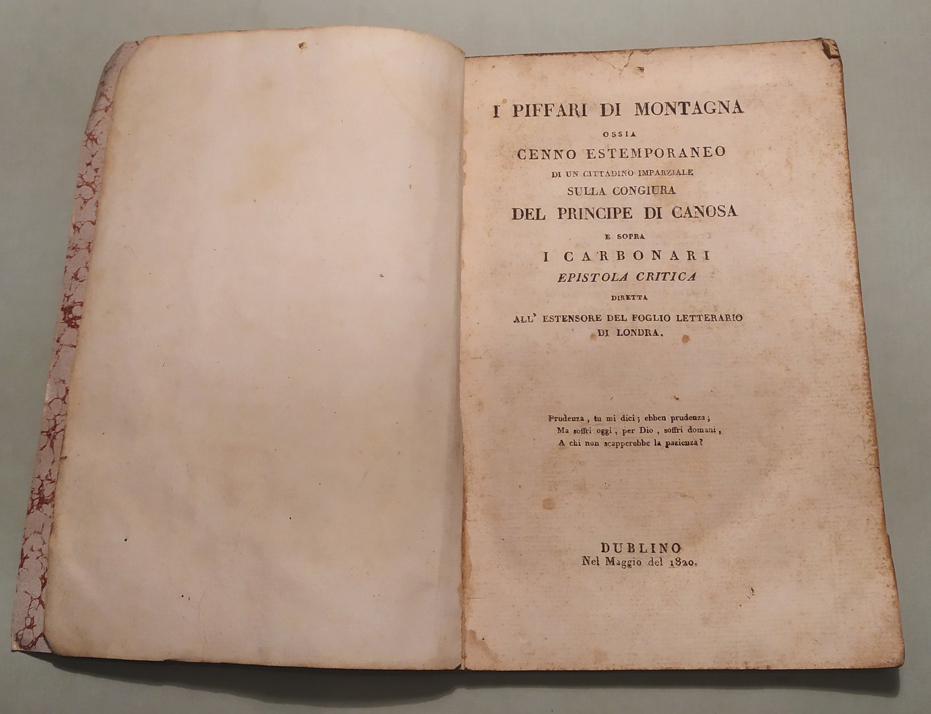 I piffari di montagna ossia cenno estemporaneo di un cittadino imparziale sulla congiura del principe di Canosa e sopra i Carbonari. Epistola critica diretta all'estensore del foglio letterario di Londra.