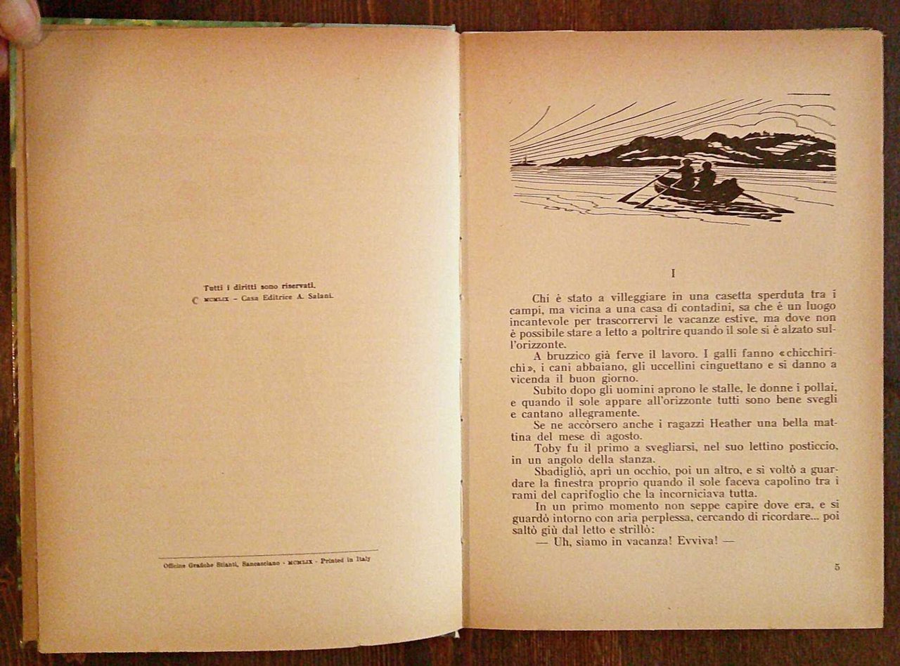 Collana Ore d'Oro. Illustrazioni in b/n n.t., anche a piena pagina, e 4 tavole a colori f.t. di R. Squillantini. Editore Salani - Sancasciano, I edizione 1959. Cartonato editoriale. 17x24; pp.152. Ottimo stato. , Ottimo (Fine)