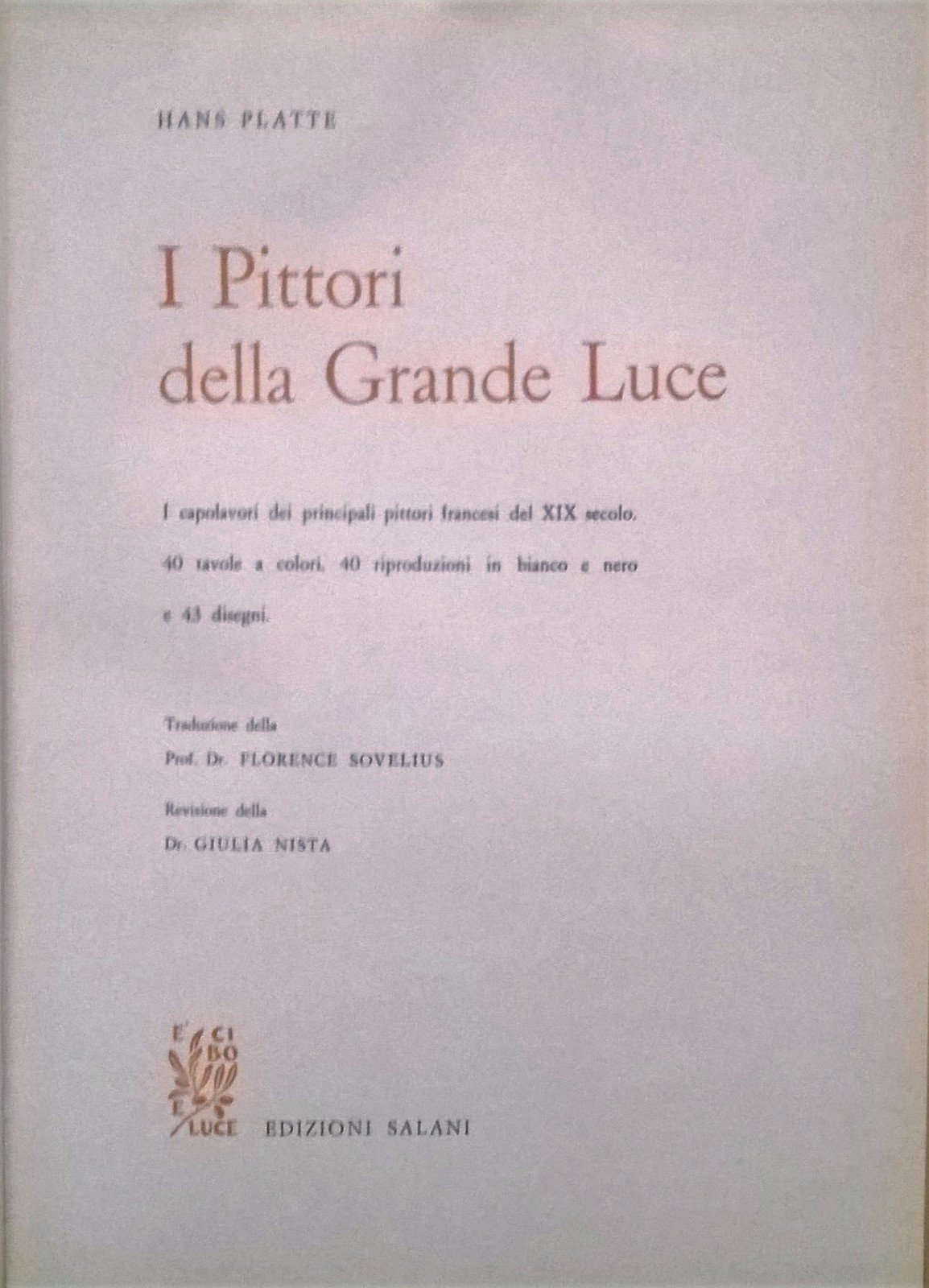 I PITTORI DELLA GRANDE LUCE di Hans Platte 1967 capolavori francesi libro arte