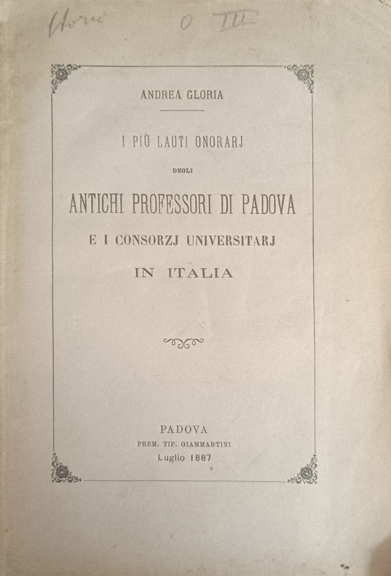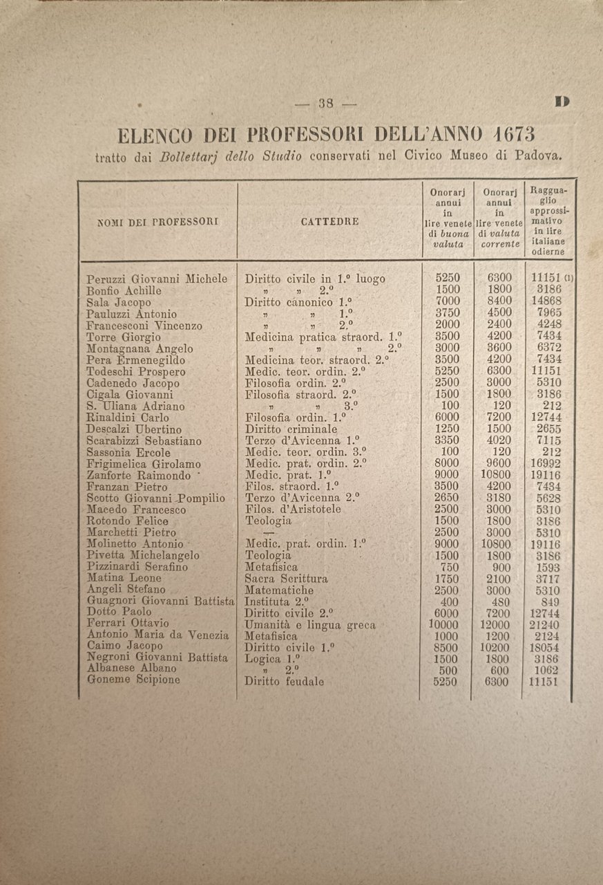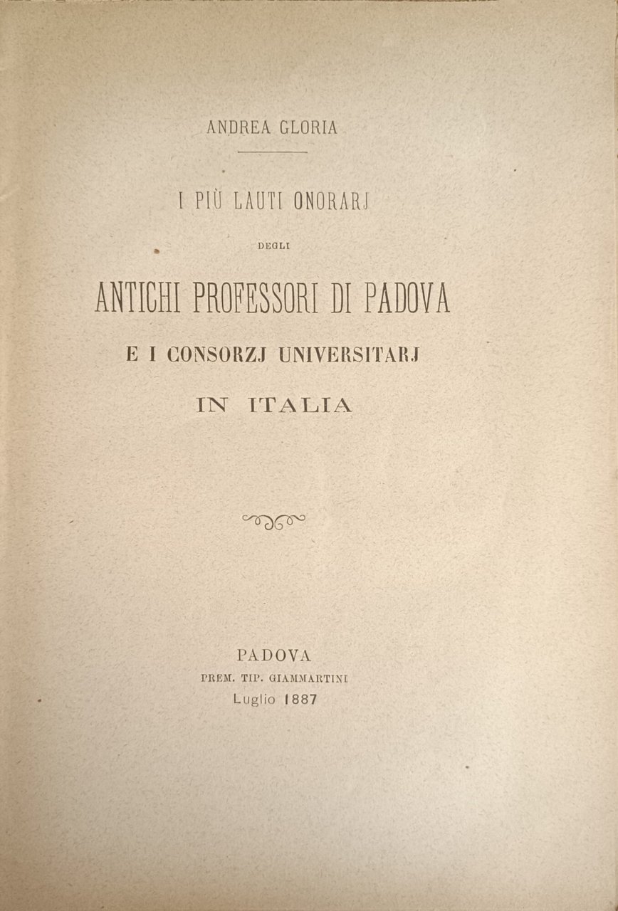 I PIÙ LAUTI ONORARJ DEGLI ANTICHI PROFESSORI DI PADOVA E I CONSORZJ UNIVERSITARJ IN ITALIA
