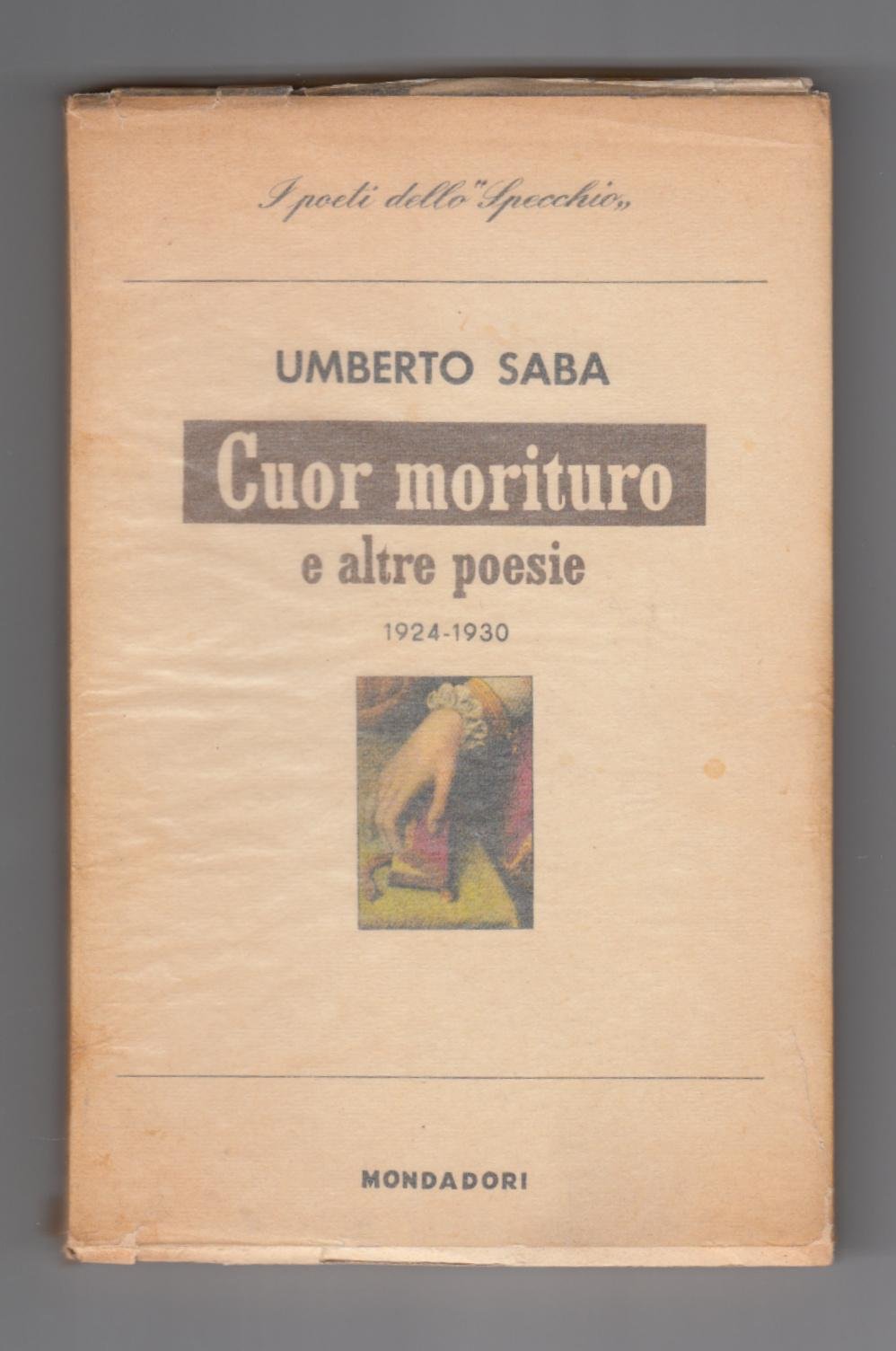 POETI DELLO SPECCHIO UMBERTO SABA CUOR MORITURO E ALTRE POESIE 1924-1930 MONDADORI 1959 1∞ EDIZIONE SOVRACOPERTA IN ACETATO CON UNO STRAPPO AL MARGINE INFERIORE, COPERTINA MORBIDA EDITORIALE, LIEVISSIME SPELLATURA AL MARGINE INFERIORE DEL DORSO E AL MARGINE INFERIORE DEL PIATTO ANTERIORE, INTERNO IN OTTIMO STATO, N. PAG. 138 CM. 19,5 X 12,7 L3471