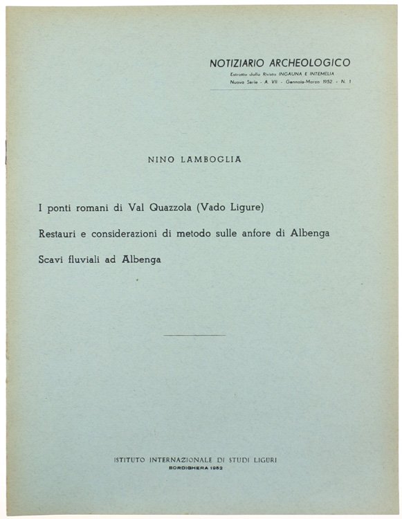 I PONTI ROMANI DI VAL QUAZZOLA (Vado Ligure) - RESTAURI E CONSIDERAZIONI DI METODO SULLE ANFORE DI ALBENGA - SCAVI FLUVIALI AD ALBENGA.