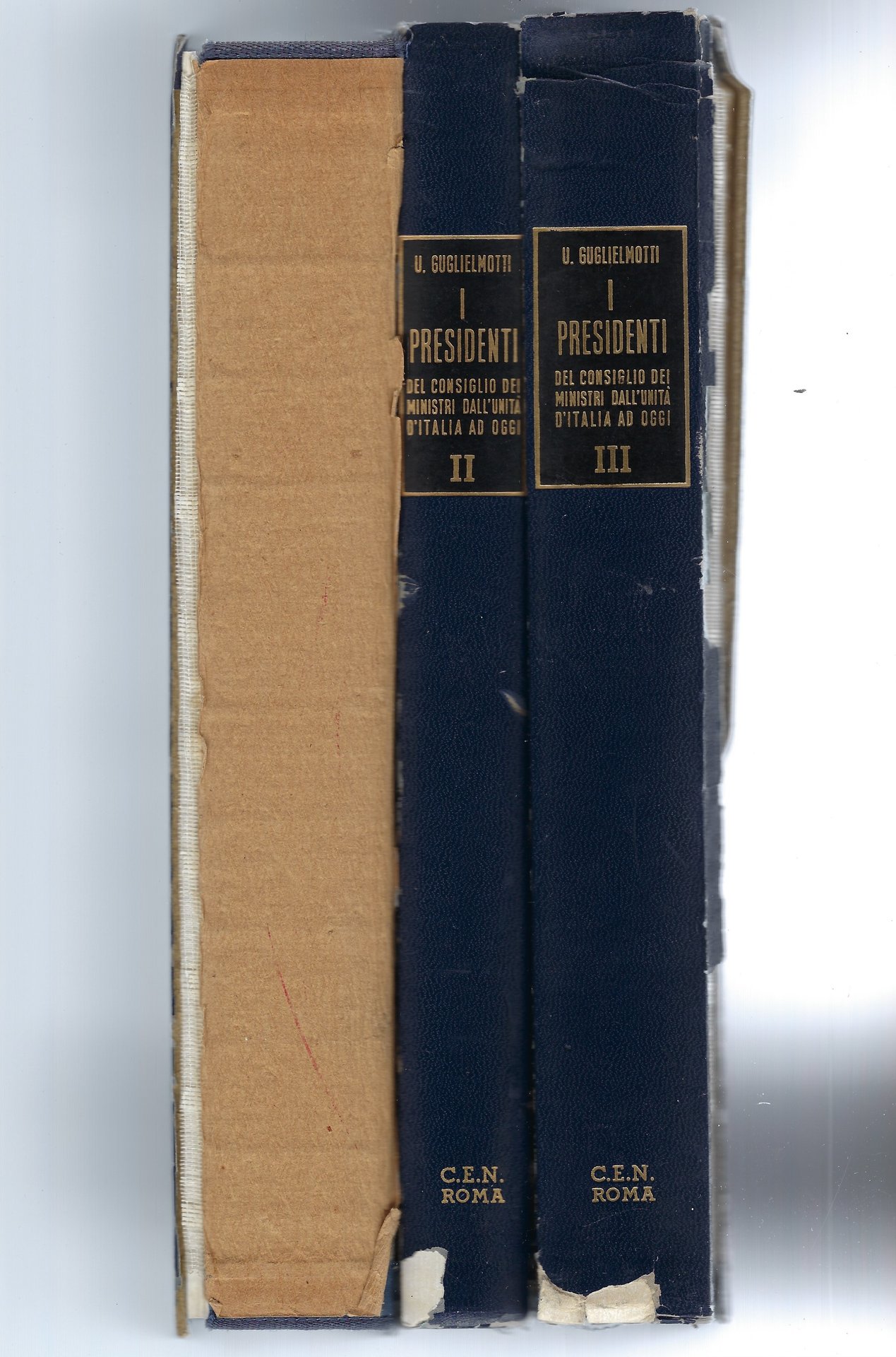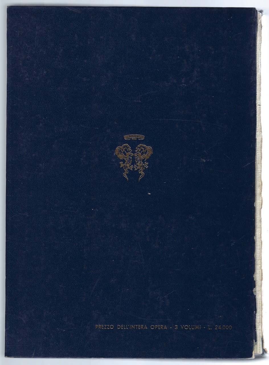 Il primo ed il termo volume presentano il dorso della coperta staccato (presente però all'interno dei volumi). Il secondo volume solo parzialmente.