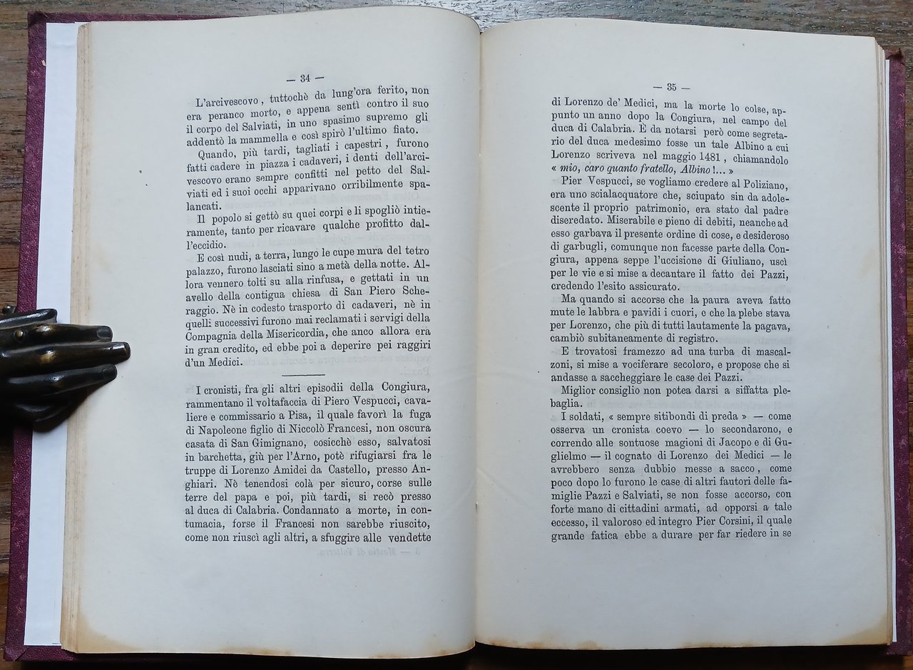 (Storia - Toscana - Volterra - Fortezza Medicea - Rocca Nuova) In 16° grande (cm 18,5 x 12,5), legatura in piena tela amaranto con titolo entro bordura e cornice impressi in oro al piatto anteriore, fregio dorato al piatto posteriore, pp. XXXIV,(2),229,(3). Piccola brunitura all'angolo del margine inferiore bianco delle pagine, peraltro ottimo stato di conservazione. Edizione originale.