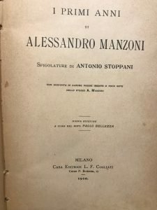 I PRIMI ANNI DI ALESSANDRO MANZONI. SPIGOLATURE DI ANTONIO STOPPANI CON AGGIUNTA DI ALCUNE POESIE INEDITE O POCO NOTE DELLO STESSO A. MANZONI. 1910