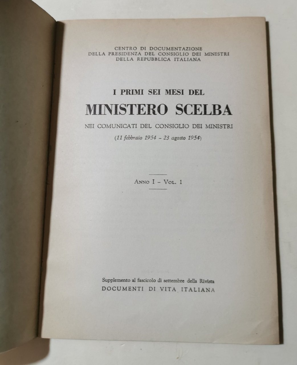 I primi sei mesi del Ministero Scelba nei Comunicati del Consiglio dei Ministri ( 11 febbraio 1954- 23 agosto 1954 ) Anno I/ Vol. I